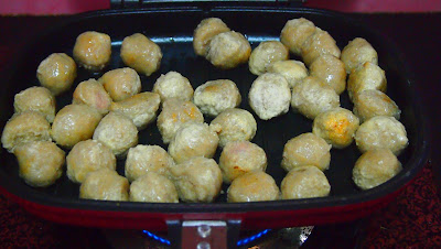 2.Goreng bebola daging sehingga separuh masak.Saya gunakan kuali pemanggang ajaib supaya tidak melekat.